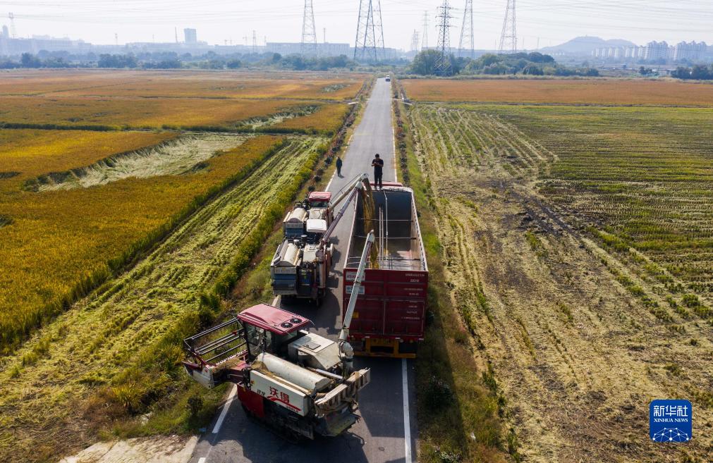 近日,浙江省湖州市吳興區東林鎮省級現代農業園區內高標準農田迎來豐收季,當地緊抓農時開展秋收活動。
