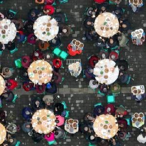 10月19日拍攝的華巖鎮(zhèn)石龍社區(qū)“長壽宴”活動現(xiàn)場(無人機照片)。