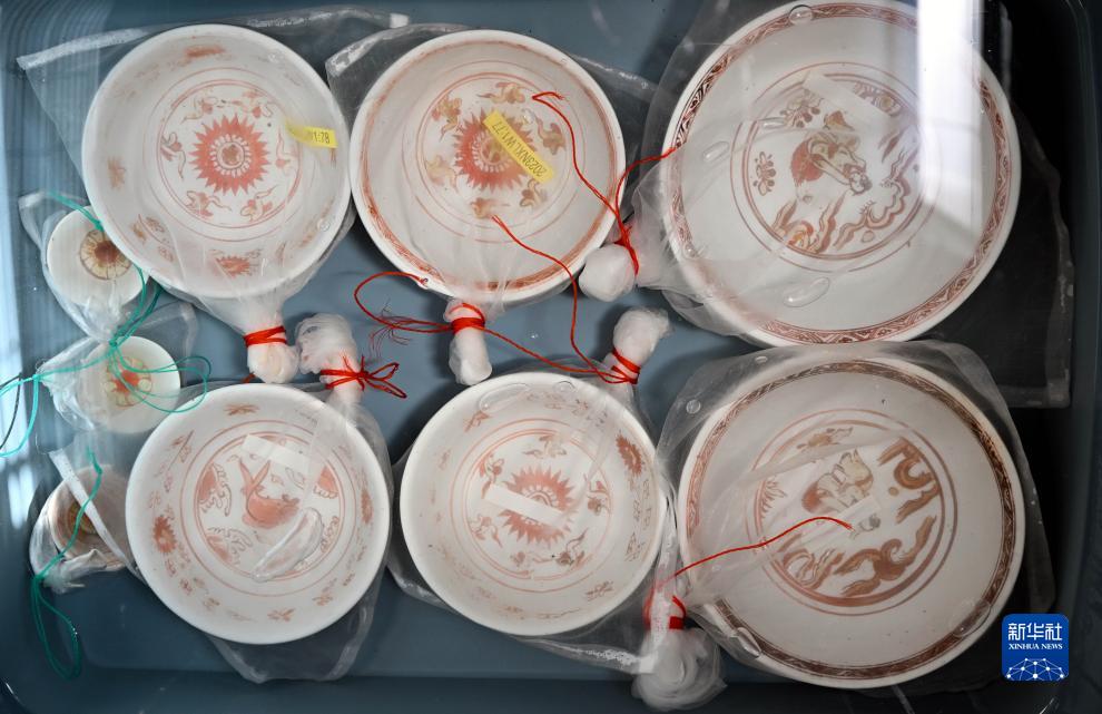 這是從沉船遺址提取出的部分文物(10月10日攝)。