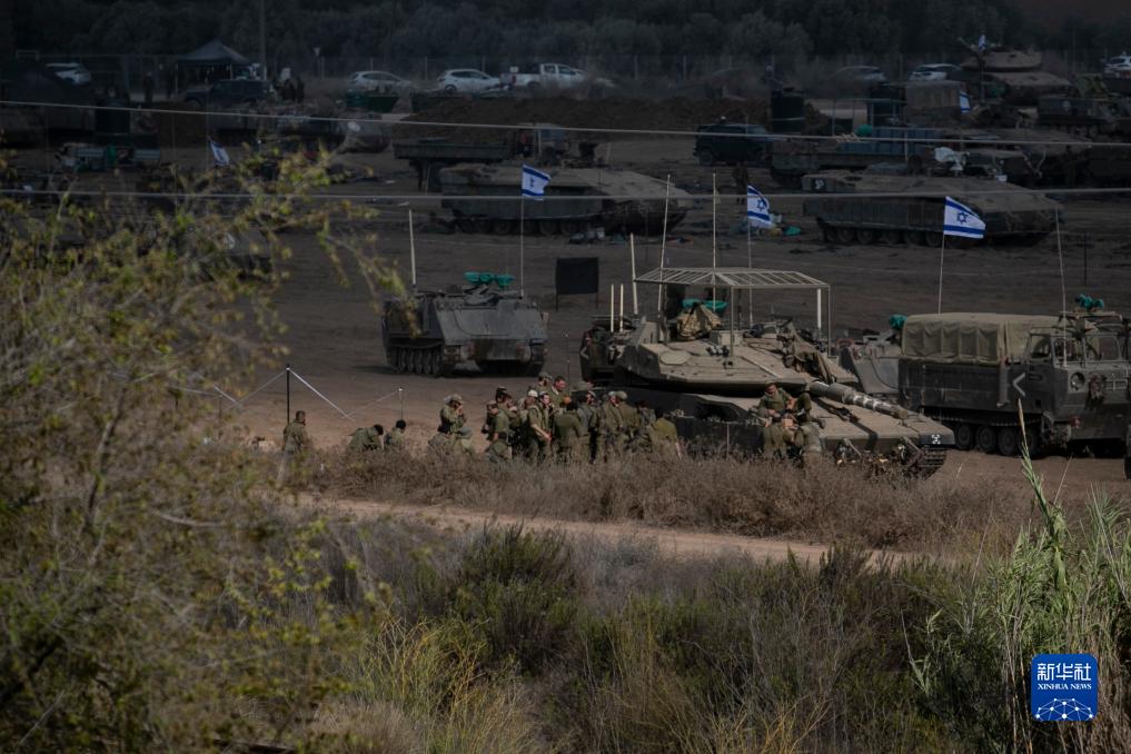 這是10月19日在加沙邊境以色列一側拍攝的集結的以軍戰車和人員。