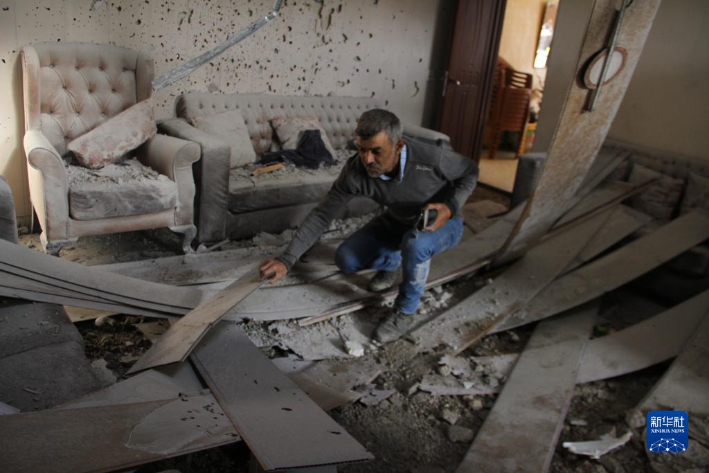 10月19日,在黎巴嫩南部黎以邊境附近一村莊,一名居民正在查看房屋受損情況。