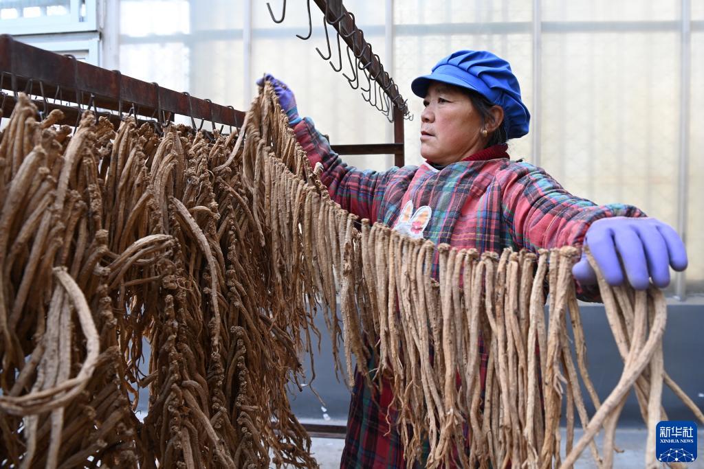 金秋時(shí)節(jié),甘肅省定西市岷縣的黨參、黃芪等中藥材陸續(xù)豐收,當(dāng)?shù)刂兴幉钠髽I(yè)組織工人加工晾曬。岷縣位于甘肅省南部,是西北中藥材主產(chǎn)區(qū)之一,全縣中藥材種植面積65萬畝左右。