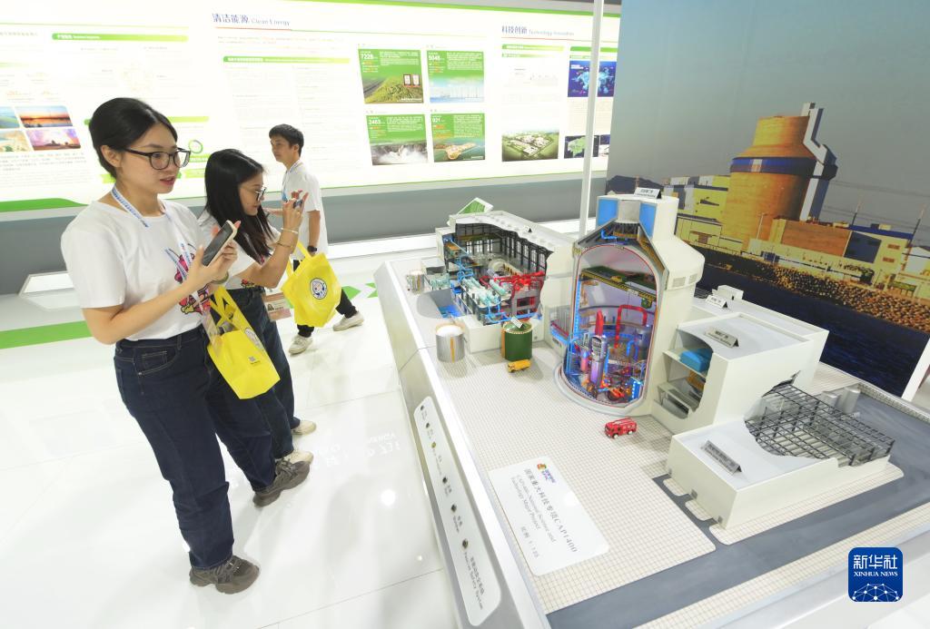 10月20日,參觀者在國家電力投資集團有限公司展位參觀拍攝“國和一號”核電機組模型。