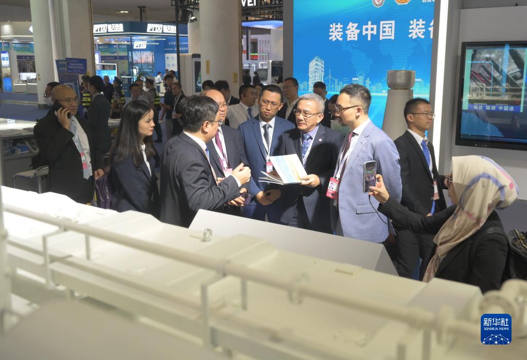 10月20日,嘉賓在特變電工股份有限公司展位參觀±1100KV特高壓直流換流變壓器等電工設備。