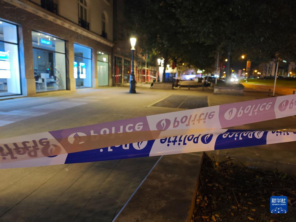 10月16日,在比利時布魯塞爾,槍擊事件現場被警方封鎖。