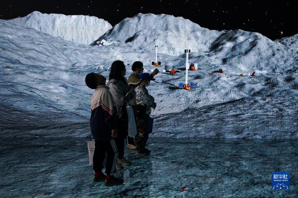 10月21日,市民在新華社媒體融合生產技術與系統國家重點實驗室的航天科普項目中沉浸式體驗航天元宇宙。