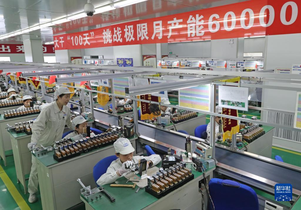 柯曉賓(站立者)在沈陽鐵路信號有限責任公司電器車間指導班組成員生產繼電器(10月17日攝)。