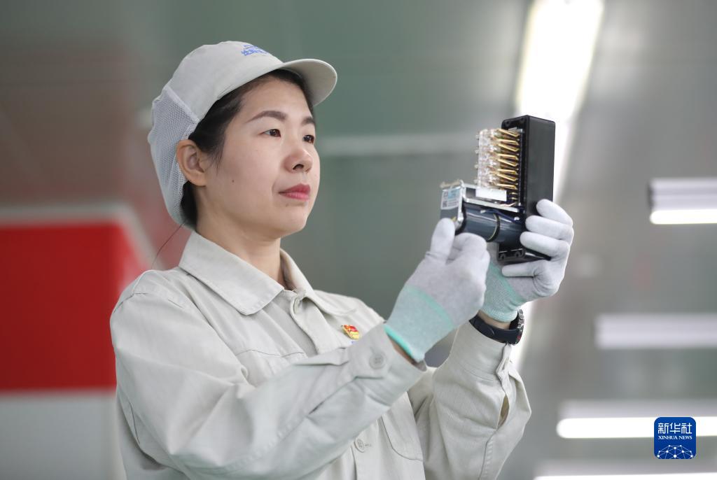柯曉賓在沈陽鐵路信號有限責任公司電器車間查看繼電器(10月17日攝)。