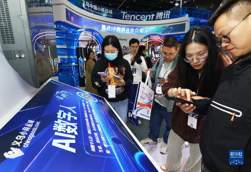 10月21日,在義博會(huì)“AI改變商業(yè)”主題展區(qū),工作人員向客商介紹AI技術(shù)使用。