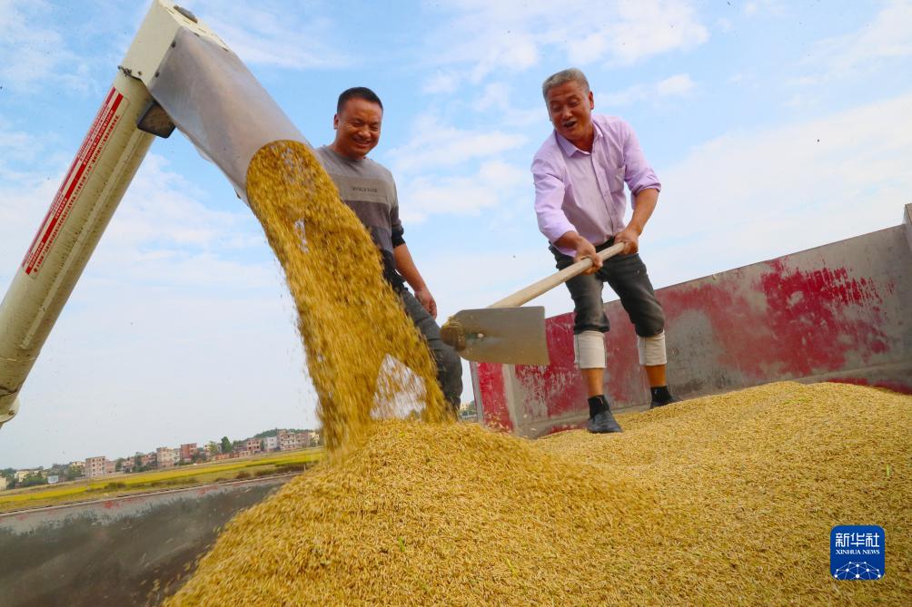 10月21日,在湖南省永州市新田縣三井鎮(zhèn)山下村,村民收獲水稻。