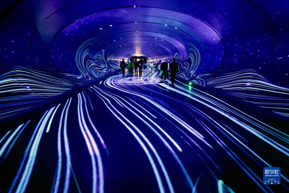 10月18日,在第81屆世界科幻大會主場館——成都科幻館內,人們走在“時空隧道”內。