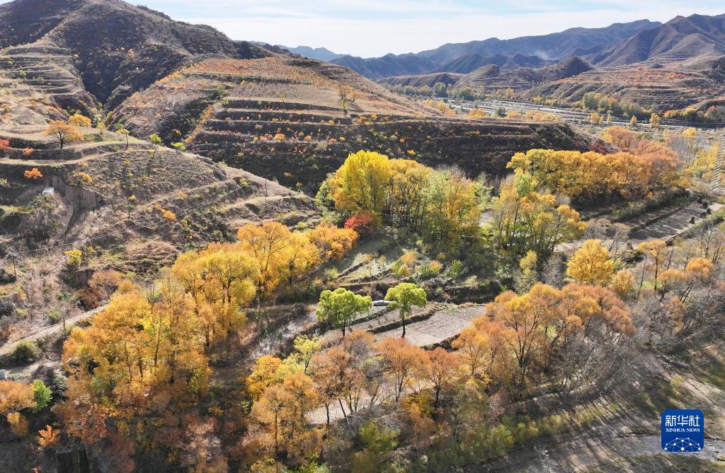 這是10月18日拍攝的河北省尚義縣小蒜溝鎮秋色(無人機照片)。