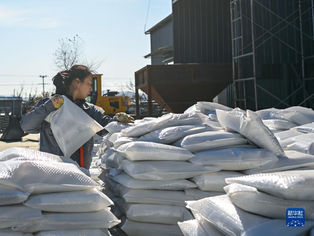 10月20日,劉春艷在她的現(xiàn)代化米業(yè)加工廠搬運(yùn)即將發(fā)往全國(guó)的大米。