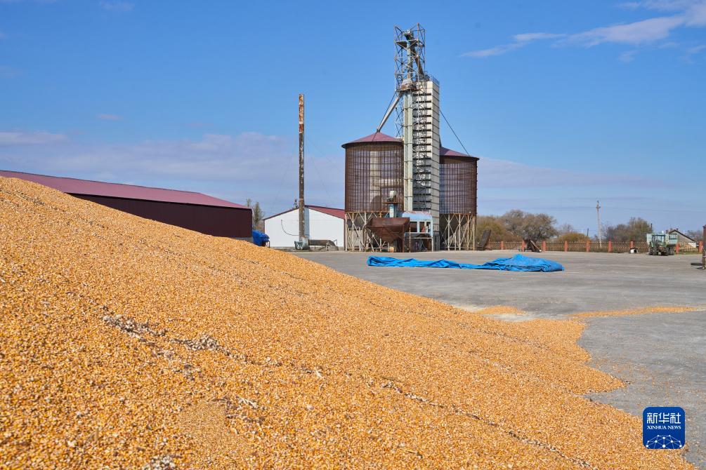 10月22日,在俄羅斯遠(yuǎn)東城市烏蘇里斯克,收割的玉米正在等待被送入干燥塔處理。