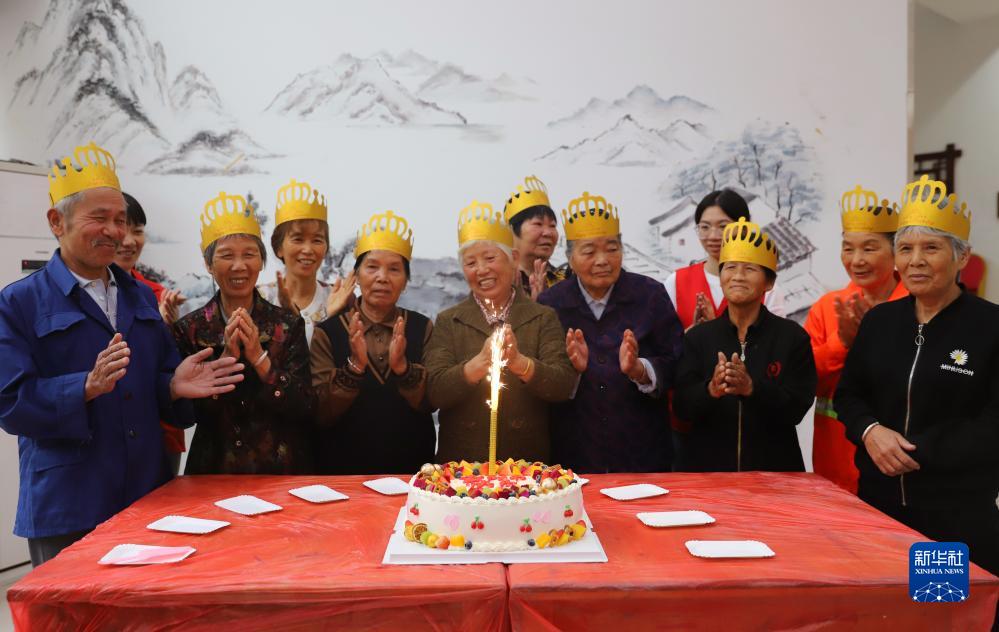 10月22日,浙江省臺州市路橋區路北街道的黨員志愿者在銘泰社區為老人們過集體生日。