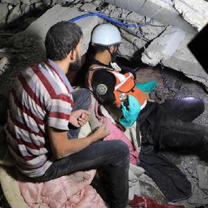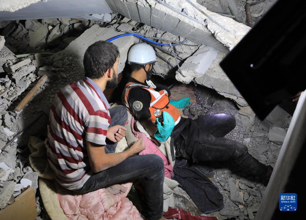 10月22日,在加沙城,人們在遭以色列襲擊損毀的建筑中實施救援。