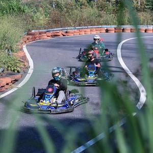 10月23日,游客在建德市楊村橋鎮嶺源樂活島休閑基地體驗卡丁車。