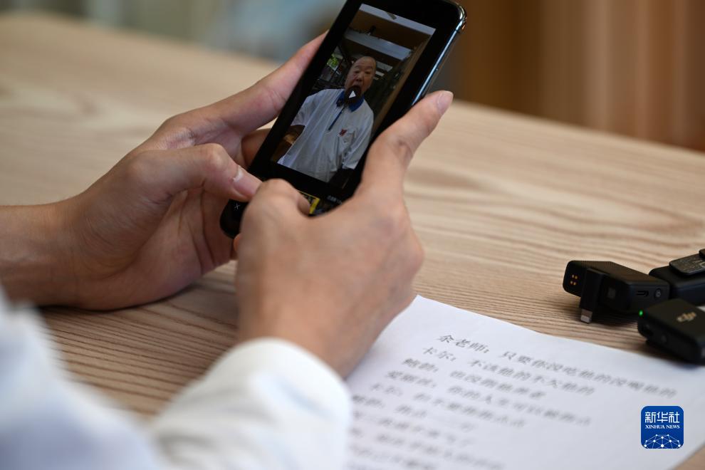 陳卓在靜雅老人院用手機(jī)剪輯視頻(10月20日攝)。