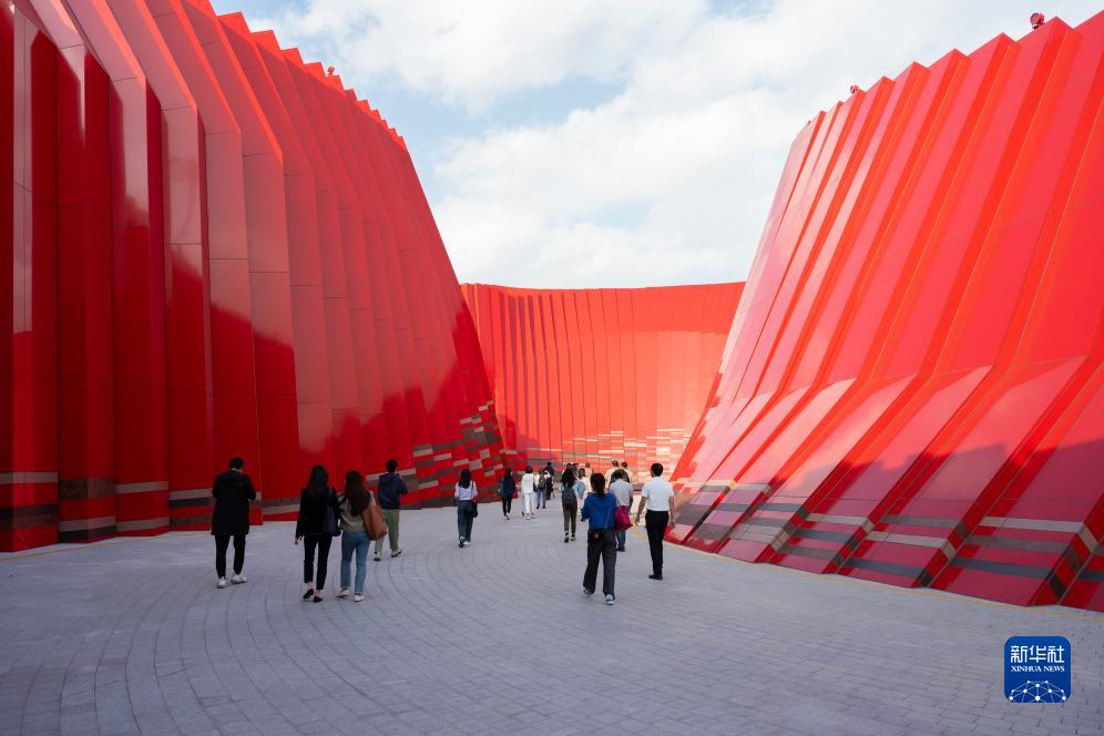 10月23日,觀眾準備進入“紅飄帶”數字體驗館內。
