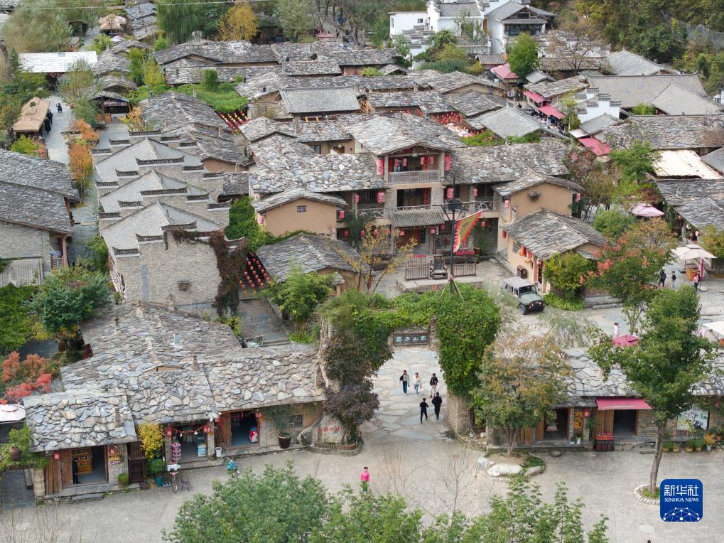 朱家灣村終南山寨民俗文化村(10月21日攝,無人機照片)。
