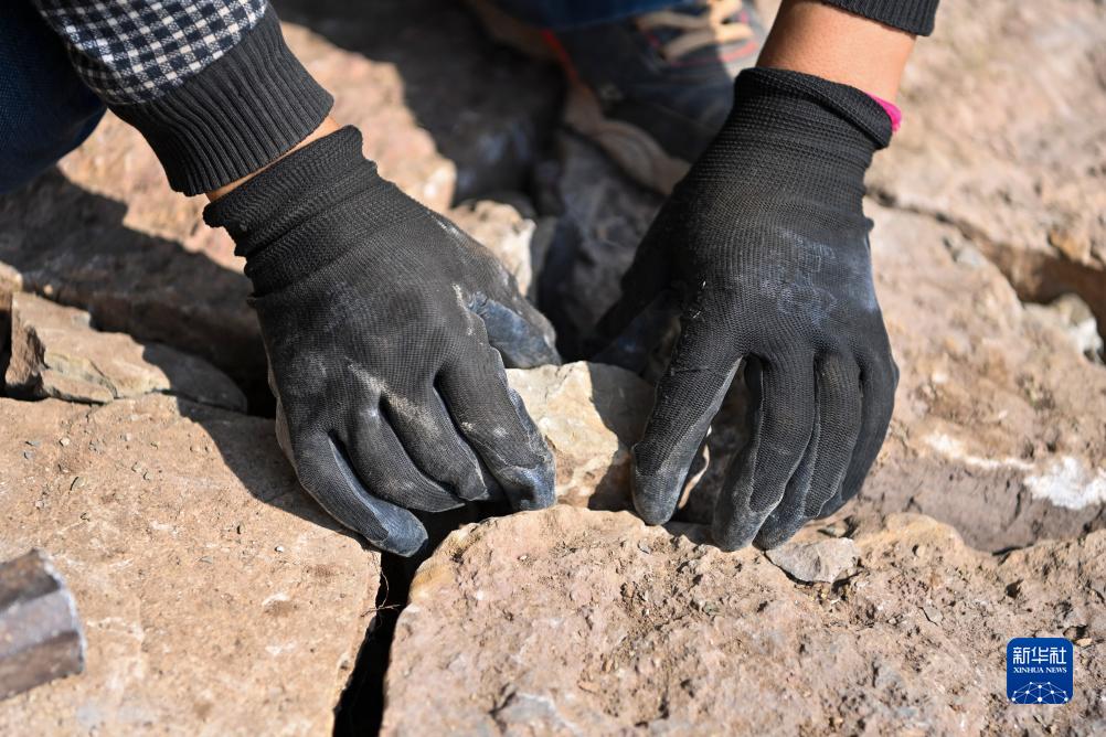 村民在山路上填補石縫(10月17日攝)。