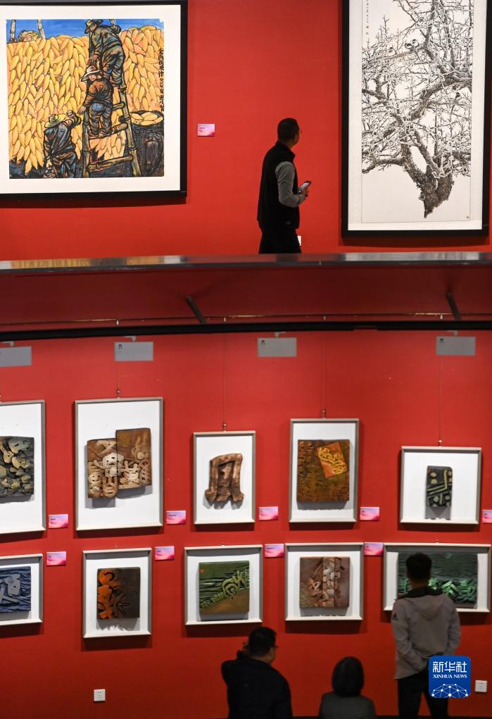 10月24日,參觀者在陜西省美術博物館欣賞藝術作品。