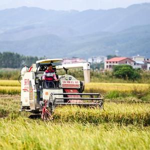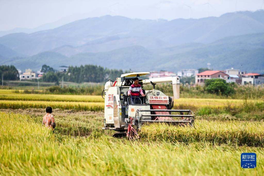 10月24日,在廣西貴港市港北區大圩鎮,農機手在收割水稻。