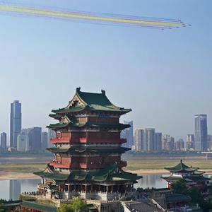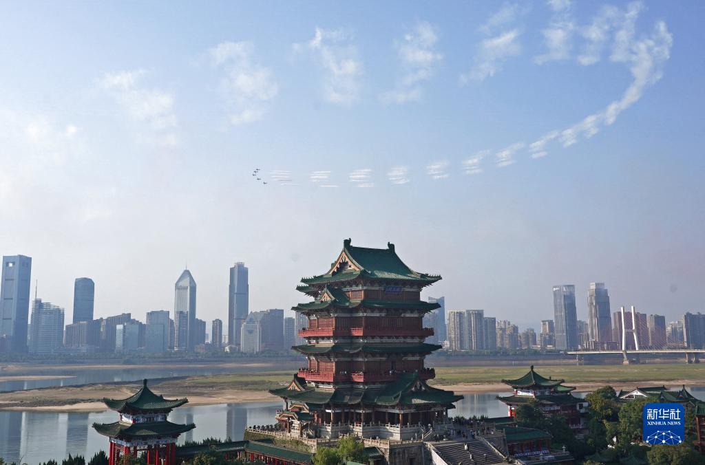 當日,2023中國航空產業大會暨南昌飛行大會組織空軍航空大學“紅鷹”飛行表演隊與歐洲環球之星特技飛行表演隊駕駛飛機在南昌市區上空進行了特技飛行表演,飛越滕王閣上空。