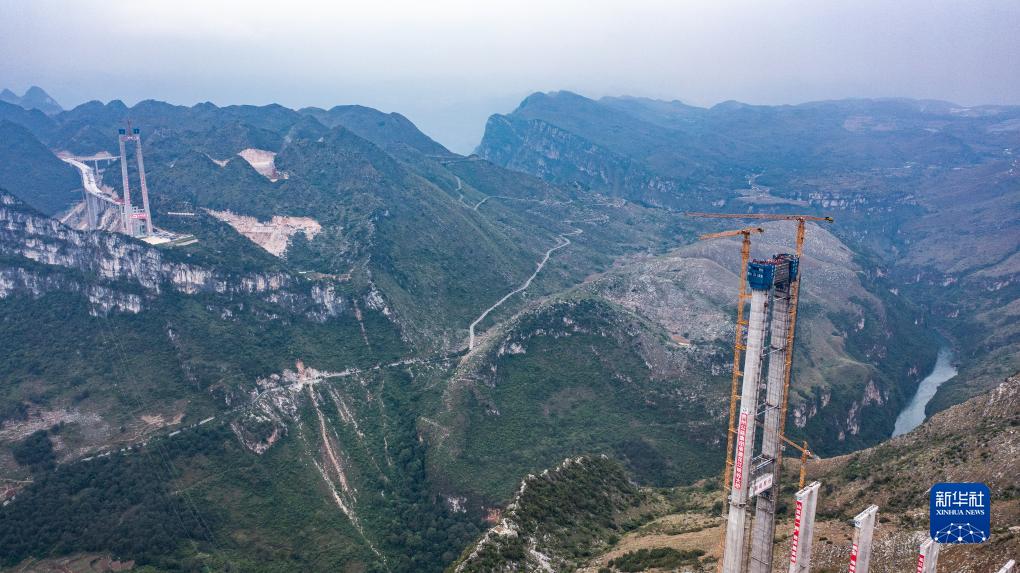 高質量發展調研行丨花江峽谷大橋5號主塔順利封頂