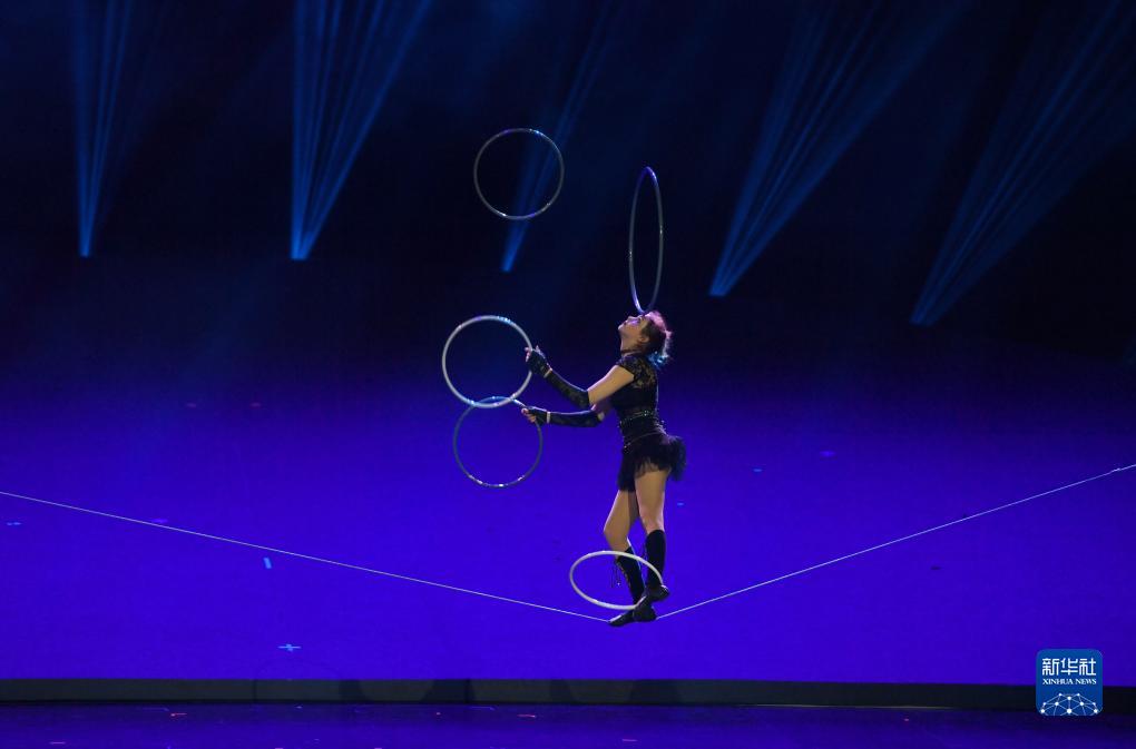 10月24日,烏克蘭雜技演員在表演《女子軟鋼絲》。