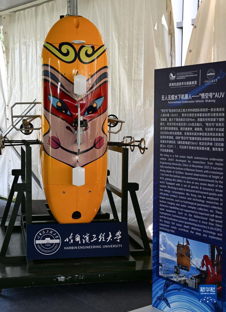 在深海先進(jìn)技術(shù)與裝備展覽上展出的全海深無人潛水器“悟空號”(10月25日攝)。