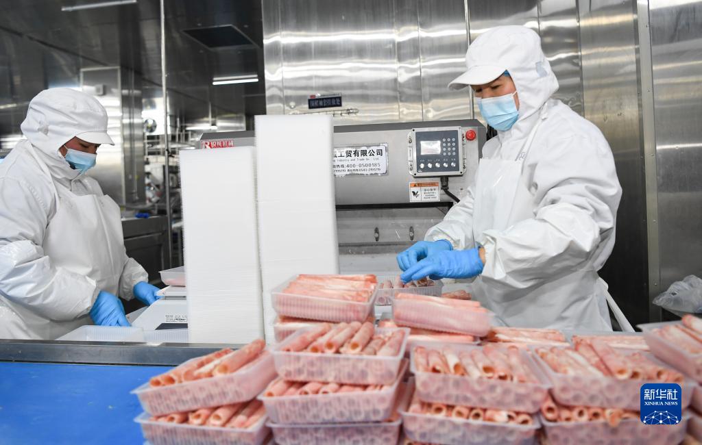 10月23日,工人在重慶市豐都縣興義鎮(zhèn)恒都集團牛肉加工車間作業(yè)。