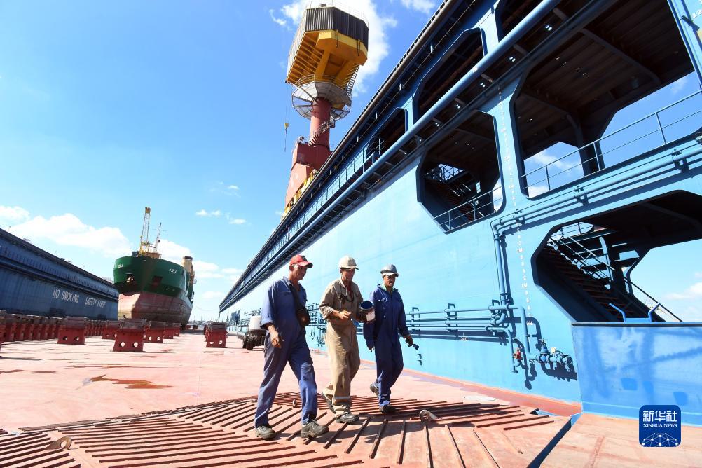 10月24日,在古巴哈瓦那港,工人走在浮船塢甲板上。