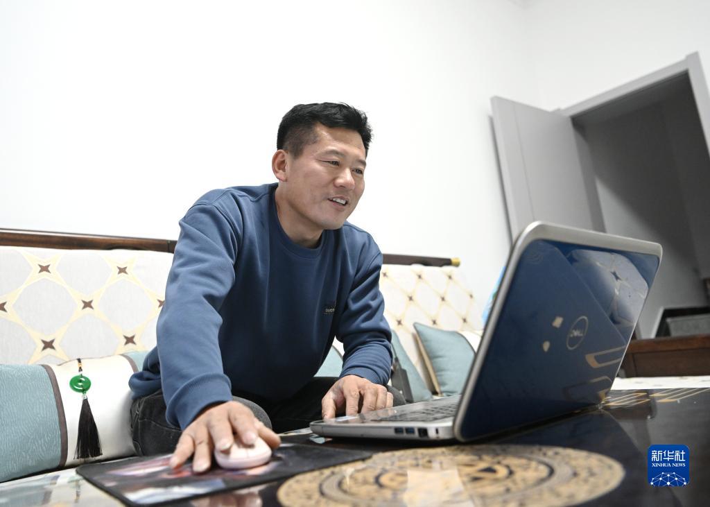 10月24日,韓戰(zhàn)橋在雄安新區(qū)安新縣家中用電腦整理照片。
