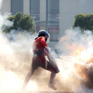 10月25日,消防員在閉幕式上演示撲滅油池火。