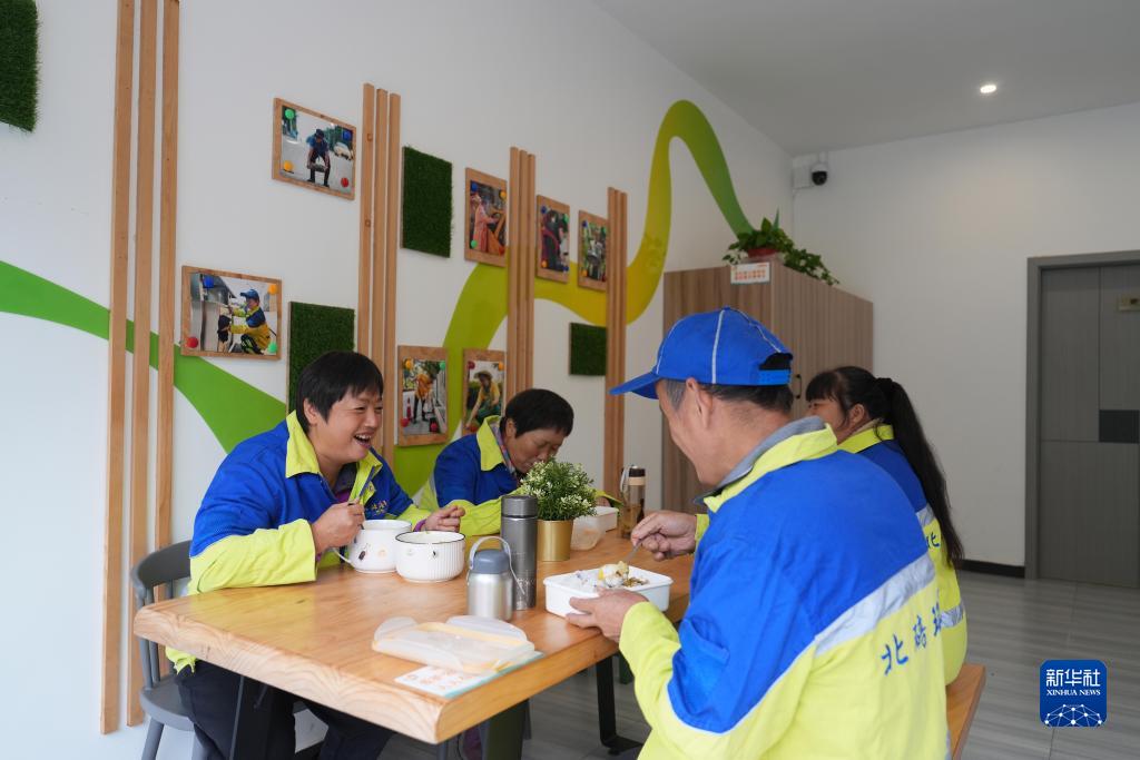 10月25日,環(huán)衛(wèi)工人在重慶市北碚區(qū)云清路“勞動(dòng)者港灣”吃午飯。