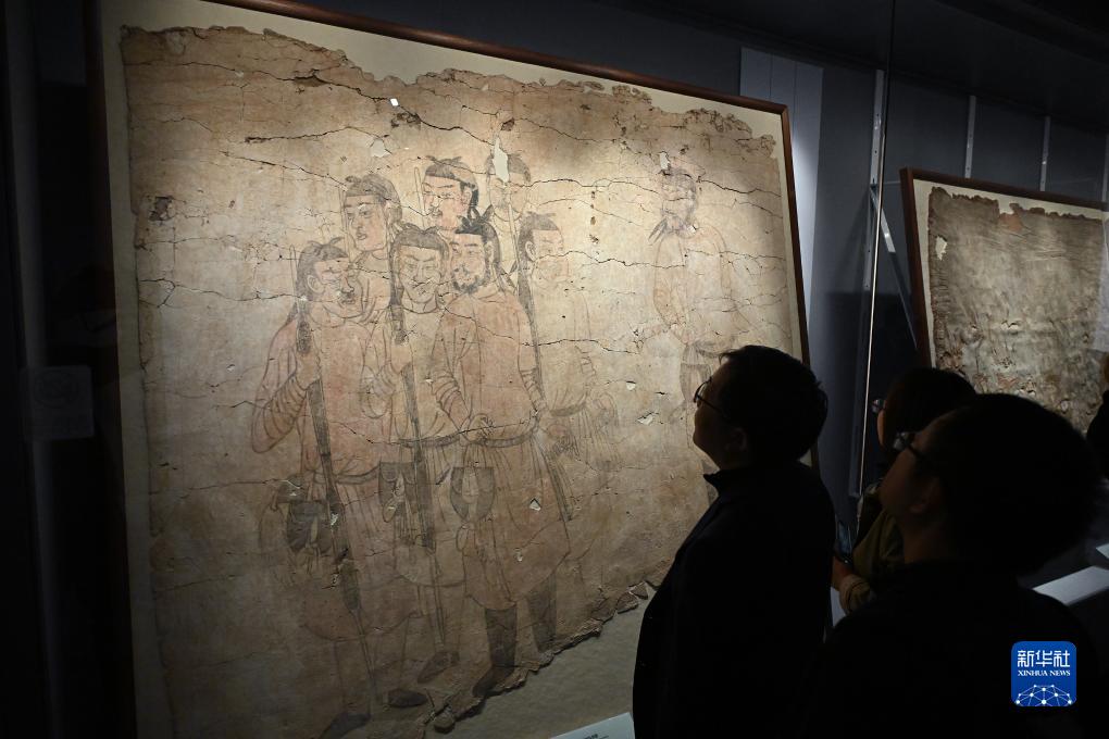 10月25日,參會者在陜西考古博物館內觀看陜西出土古代壁畫展。