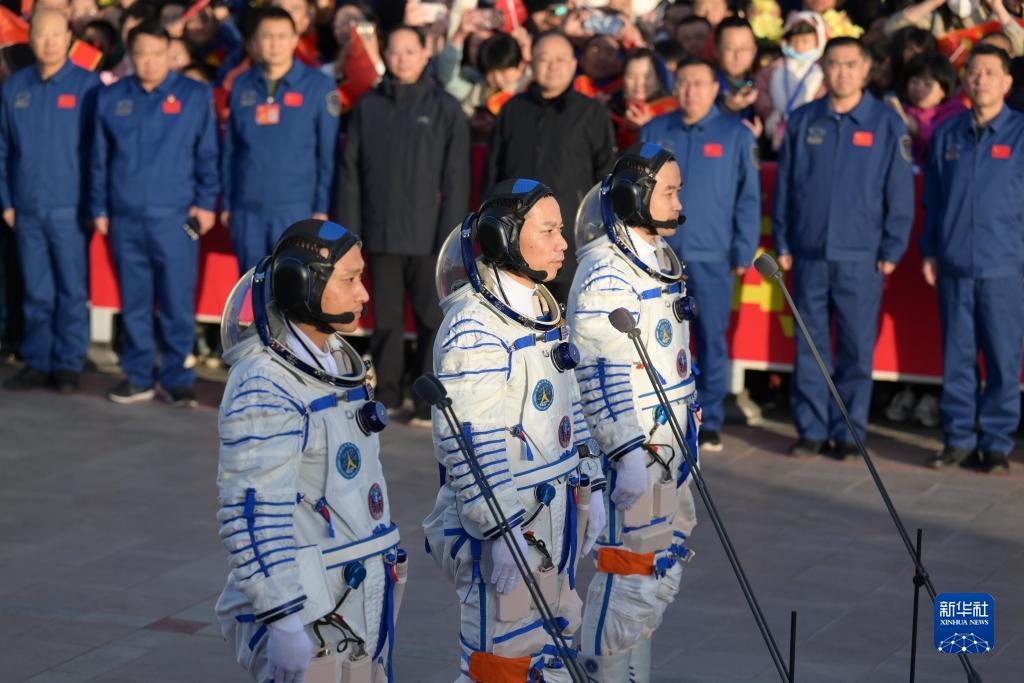 新華全媒+|神舟十七號載人飛行任務航天員乘組出征儀式在酒泉衛星發射中心舉行