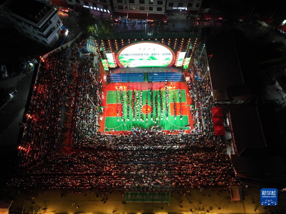 10月25日,全國和美鄉村籃球大賽總決賽開幕式現場(無人機照片)。