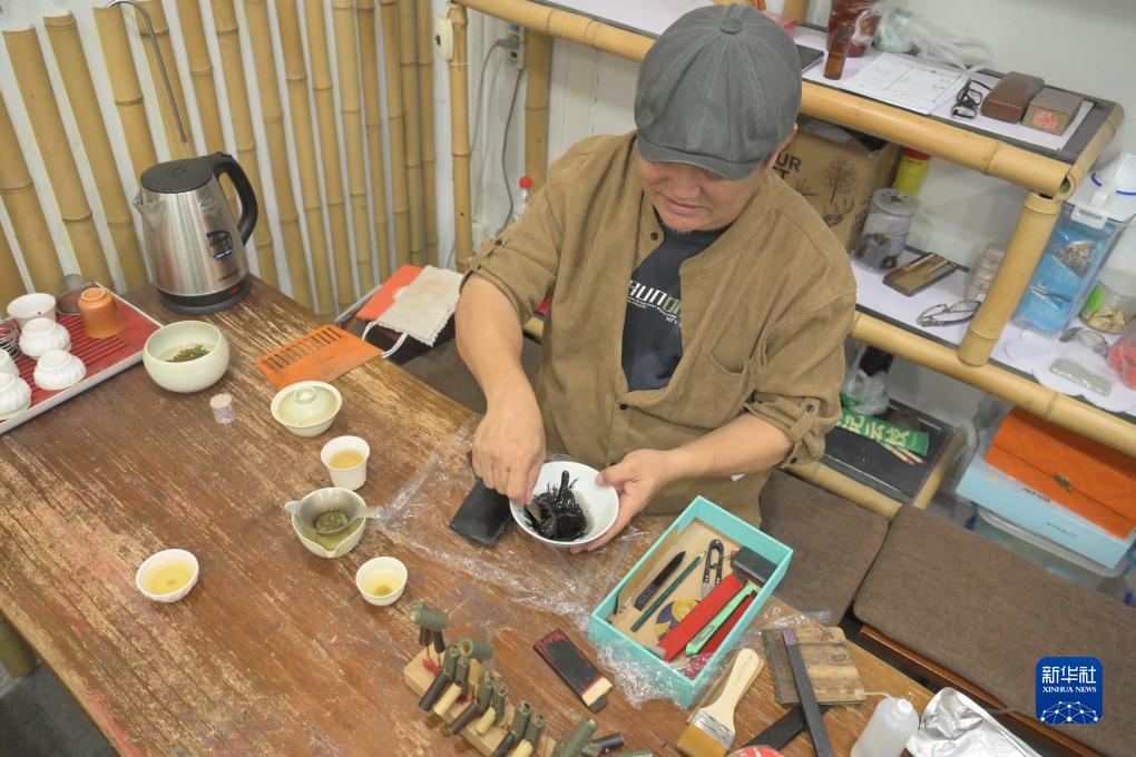 來到福州后,黃守堃致力于加強兩岸的漆藝交流,不僅將臺灣漆藝創(chuàng)新技法與福州漆藝結(jié)合,還開設(shè)體驗課并招收學(xué)徒。