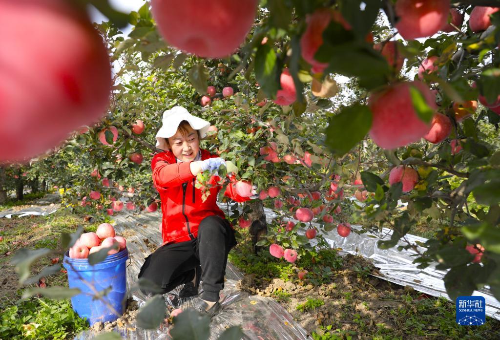 10月26日,河北順平縣南神南村果農(nóng)在果園采摘蘋果。
