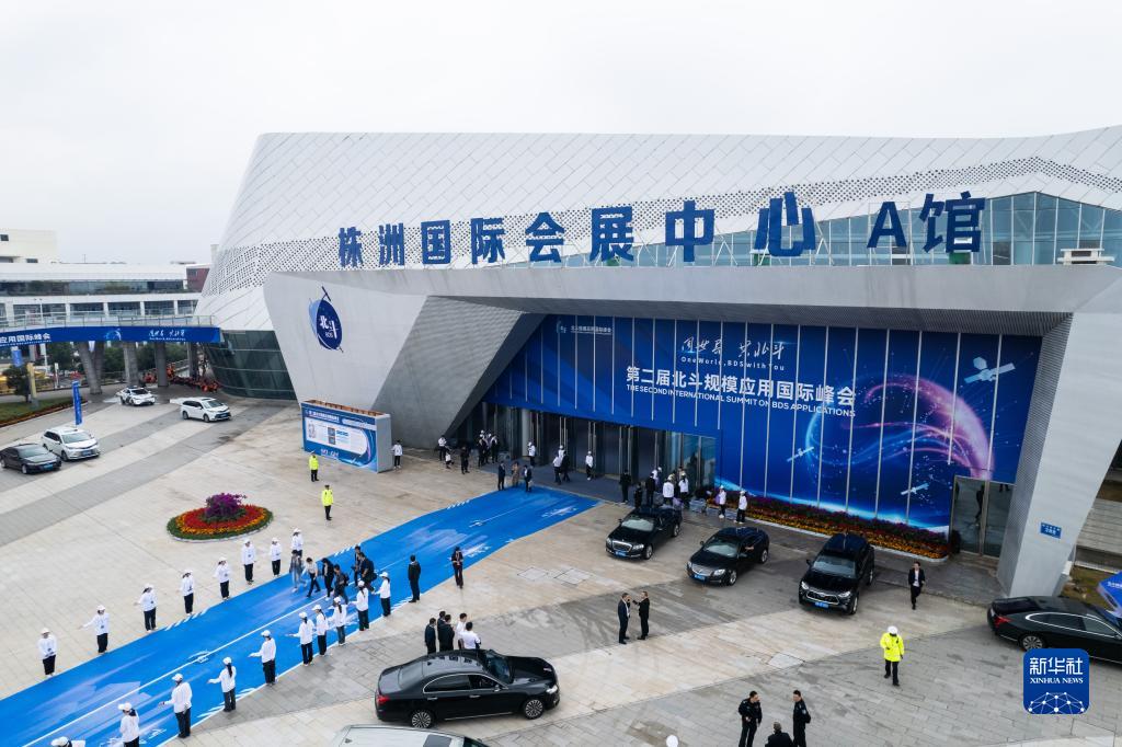 10月26日,第二屆北斗規(guī)模應用國際峰會在株洲國際會展中心開幕(無人機照片)。