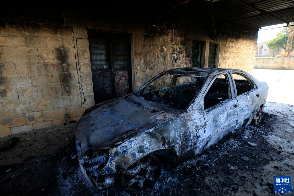 這是10月25日在黎巴嫩扎拉拍攝的一輛被燒毀的汽車。