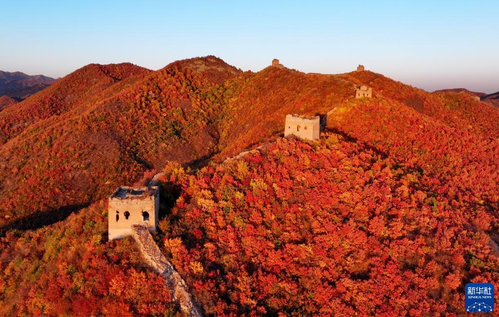 深秋時節(jié),河北省秦皇島市海港區(qū)境內(nèi)的長城景區(qū)層林盡染、色彩斑斕,景色美如畫卷。