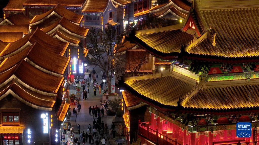 入夜時分,在河北省滄州市中心城區大運河畔,匯集美食、文創、民俗等多種元素的南川老街燈火輝煌。