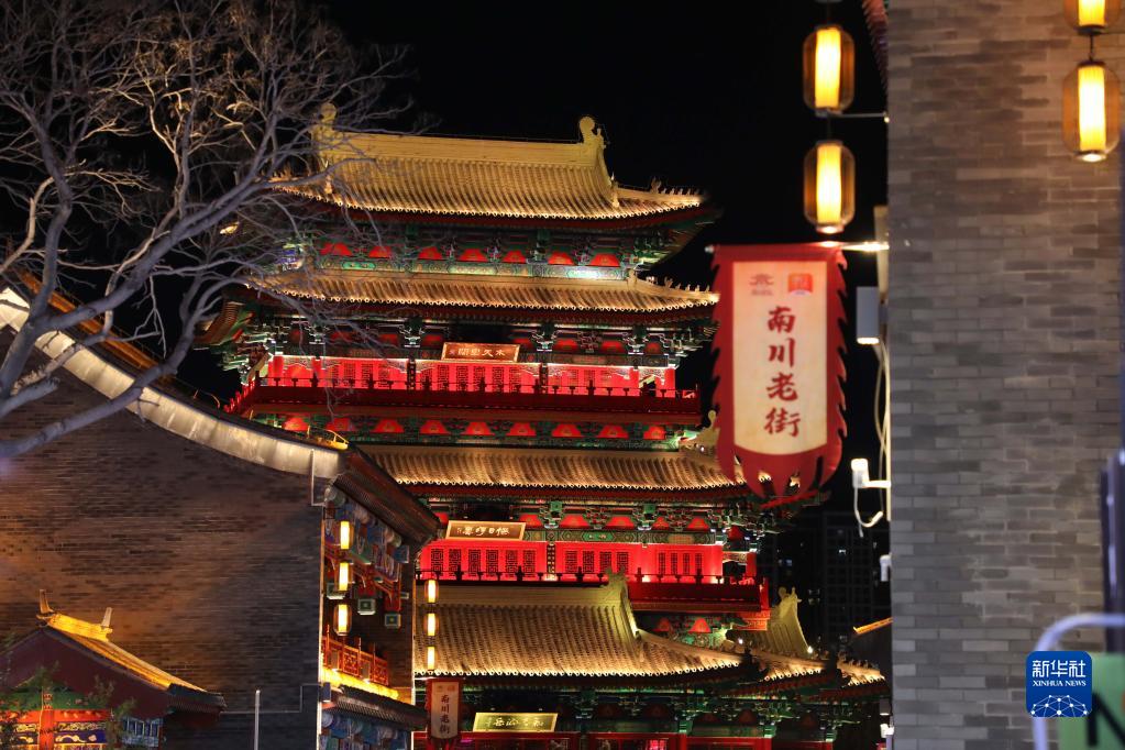 入夜時分,在河北省滄州市中心城區大運河畔,匯集美食、文創、民俗等多種元素的南川老街燈火輝煌。
