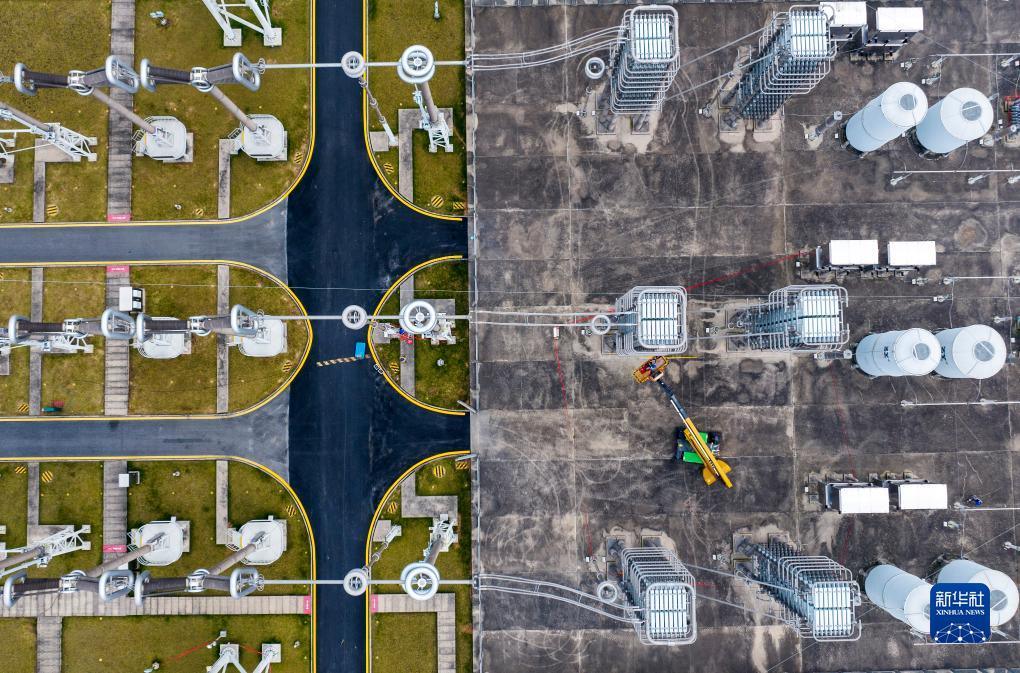 10月27日,國網安徽電力檢修人員對古泉換流站設備進行檢修、維護(無人機照片)。