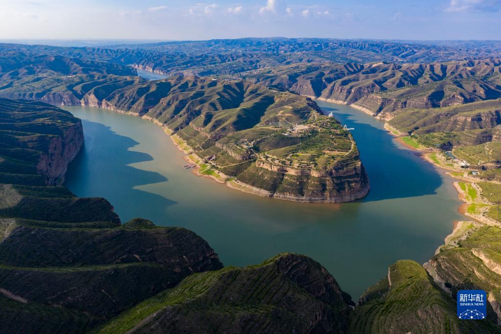 2023年8月27日拍攝的山西省忻州市偏關(guān)縣黃河乾坤灣(無(wú)人機(jī)照片)。