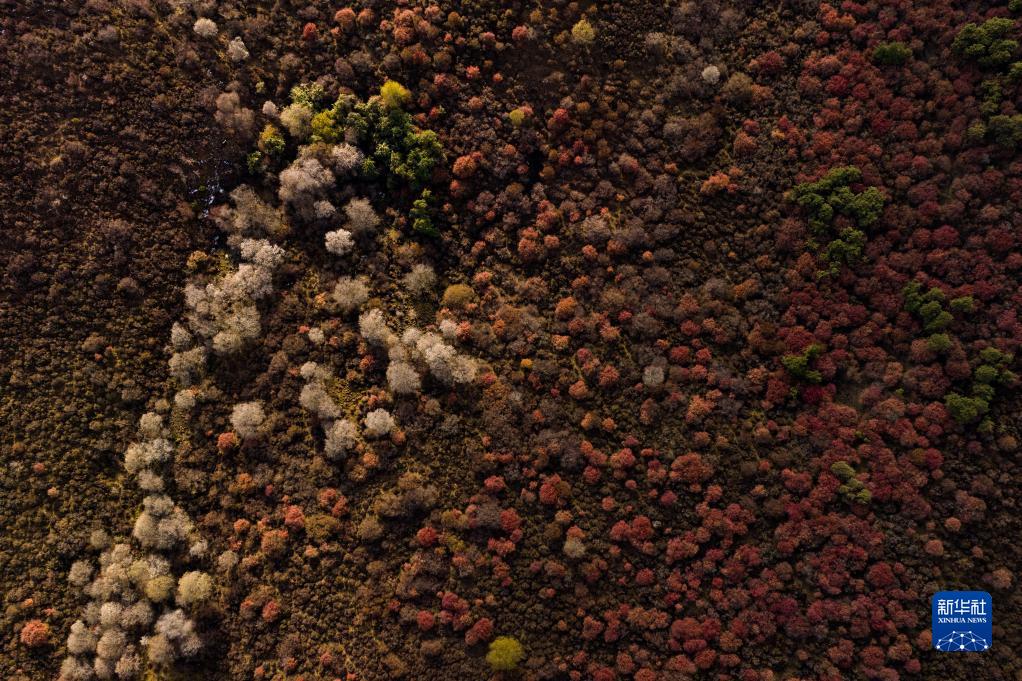 這是10月26日在青海省西寧市湟中區(qū)群加國(guó)家森林公園拍攝的秋日景色(無人機(jī)照片)。