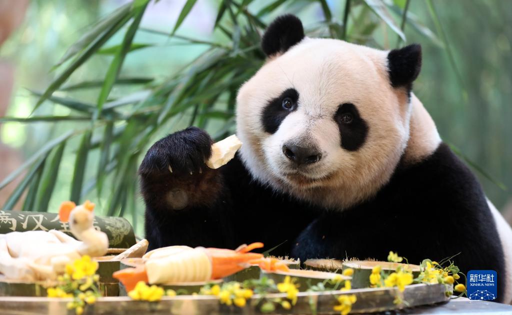 10月27日是國際熊貓日。廣州長隆野生動物世界保育員為大熊貓“酷酷”準備了豐盛的“滿漢全席”,包括“鳳尾魚翅”“干連福海參”“羅漢大蝦”等八大菜式。